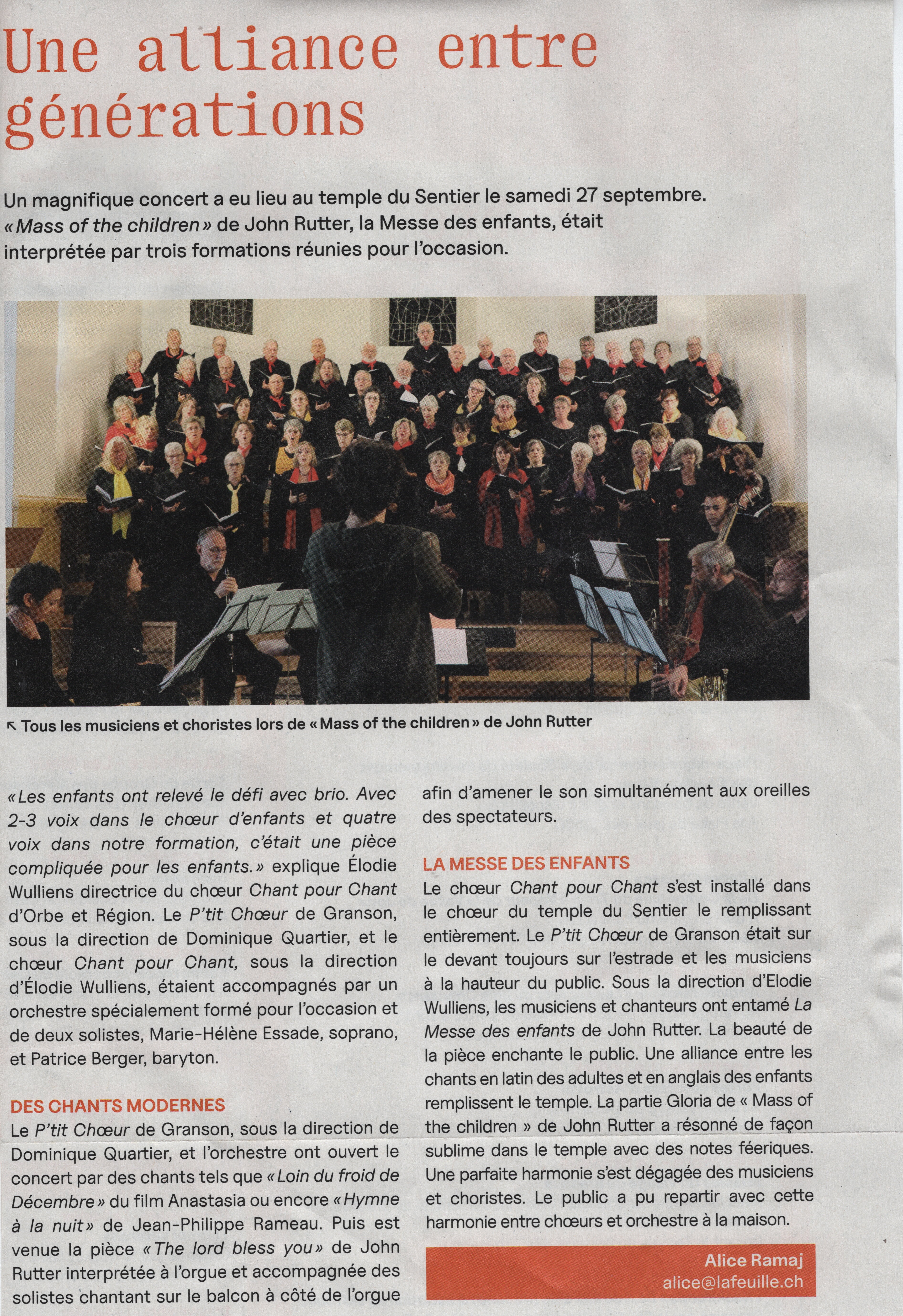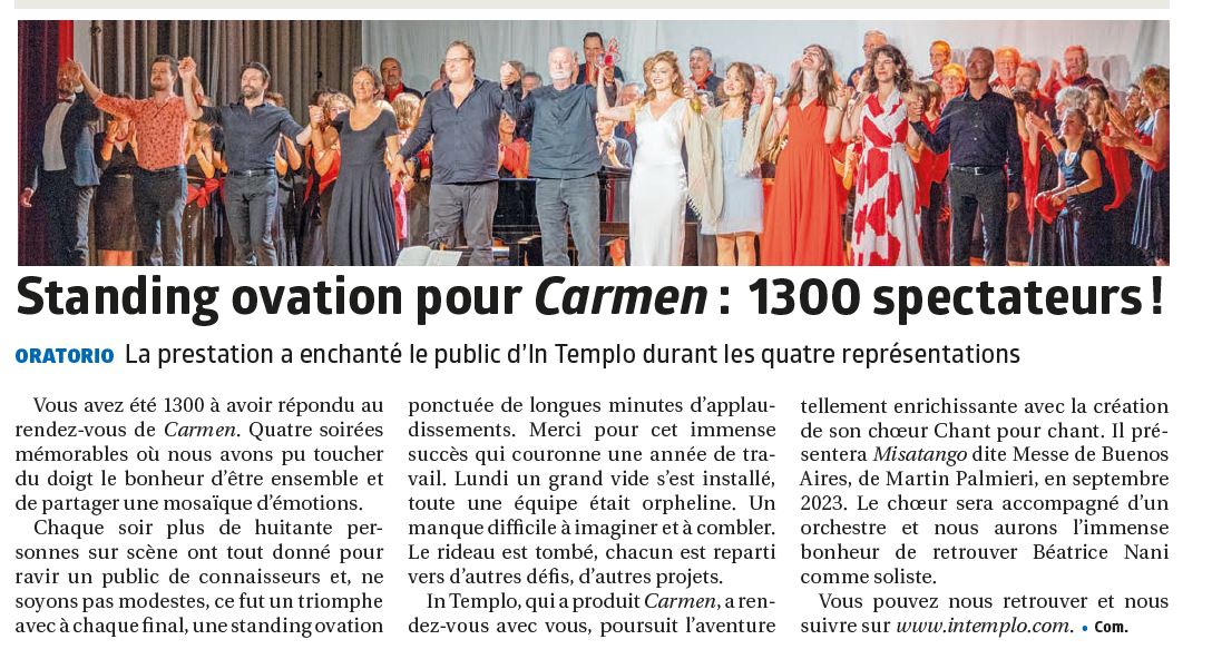 Revue de presse Projet Carmen de Bizet, La Région, 2023 Projet ‘Messe des enfants’ de John Rutter, La Feuille, 2025